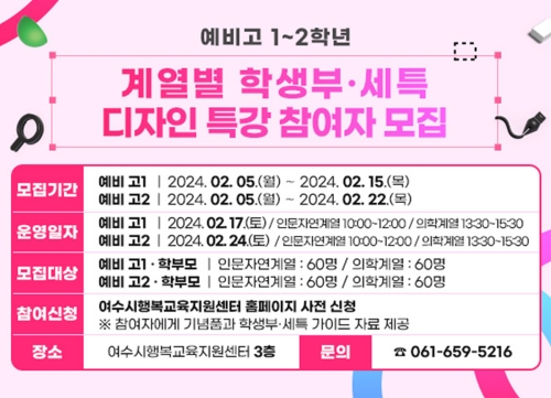 여수시 여수시(시장 정기명)가 지역 예비 고등학교 1~2학년과 학부모를 대상으로 오는 17일과 24일 ‘계열...