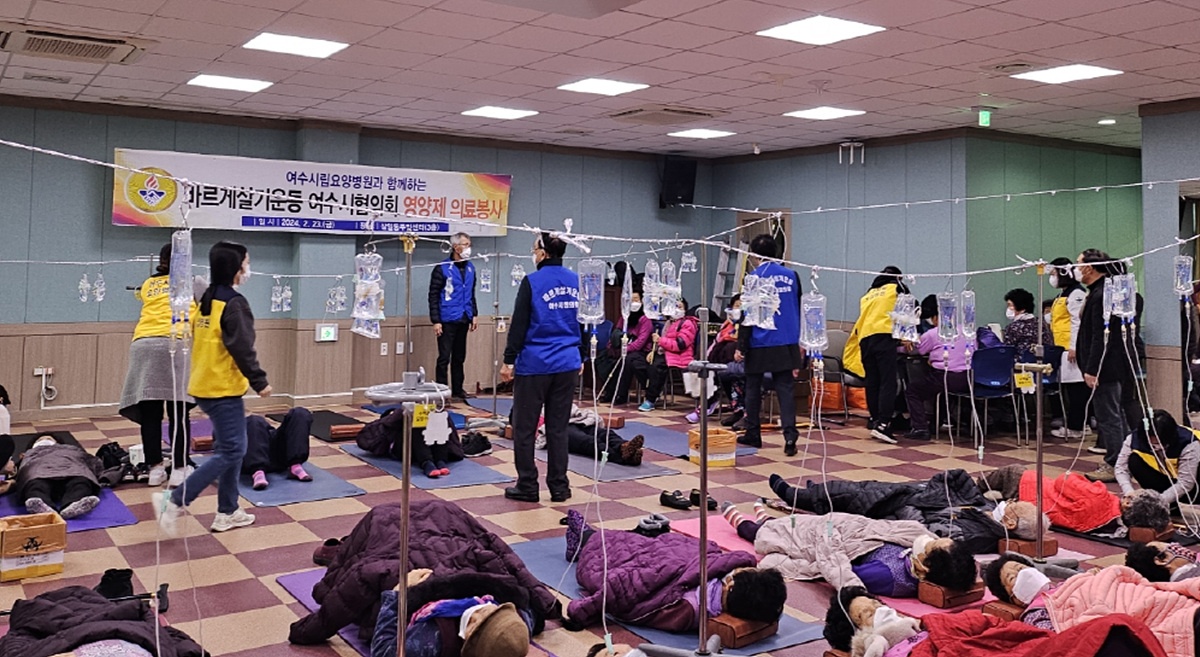 이날 삼일동 주민센터에서 협의회 회원과 여수시립요양병원 의료진 등이 참여해 취약계층 어르신 50명에게 영양제 주사를 투여하고 건강 상담 등을 진행했다.
