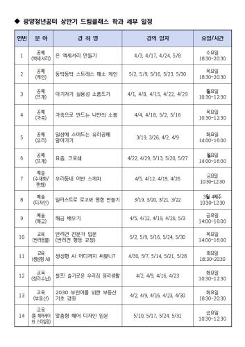 광양시 광양시는 7일부터 광양청년꿈터 청년참여 프로그램 ‘드림클래스’ 수강생을 모집한다고 밝혔다. 드림클래스...