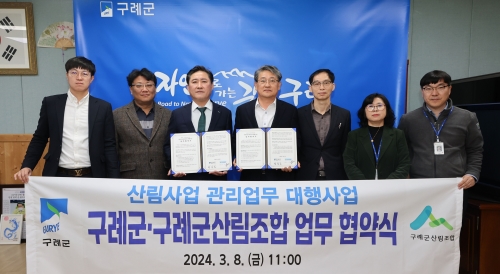 구례군 전남 구례군은 3월 8일 구례군산림조합과 2024년 숲가꾸기 사업의 관리업무 대행 협약을 체결했다. ...