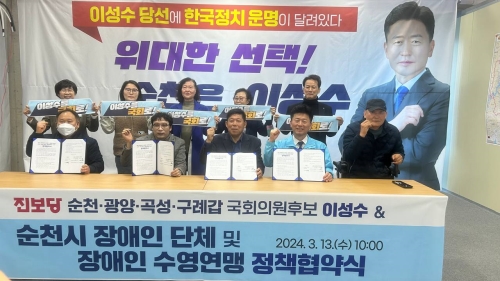 순천시-진보당 이성수 후보 순천시 장애인 협회, 장애인 수영연맹 협의회 진보당 국회의원 후보 이성수 정책협약...