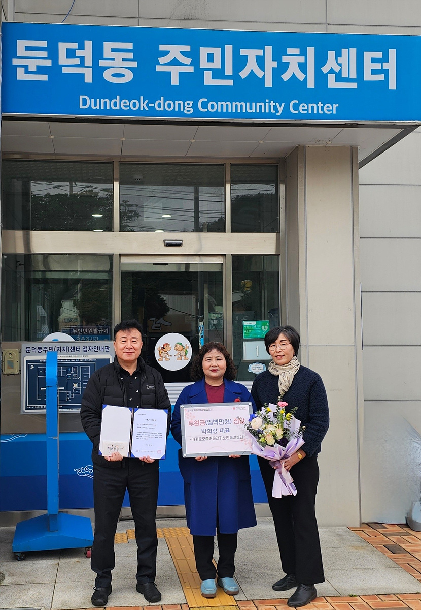 기부금은 둔덕동 홀몸 어르신 및 한부모·다문화가족 밑반찬지원과 위기가정지원 등 둔덕동지역사회보장협의체 사업을 위해 사용될 예정이다.