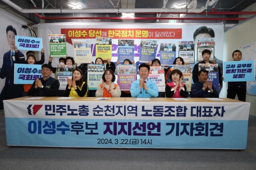 순천시-진보당 이성수 후보 민주노총 순천지역 노조 대표자 진보당 이성수 지지선언 가져 민주노총 조합원 100...