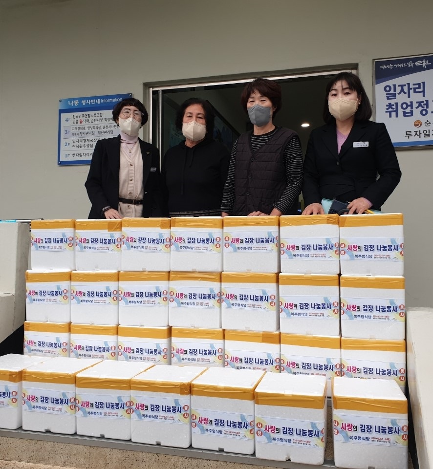 순천시 관계자는 “점점 추워지는 날씨로 힘든 시기에 앞장서서 나눔을 실천해주신 복주렁식당 대표께 감사드리며, 온정이 담긴 김장김치를 어르신들에게 잘 전달해드리겠다.”고 말했다.