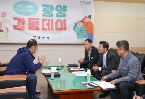 광양시 정인화 광양시장은 12일 시청 시민접견실에서 4월 중 ‘광양 감동데이’를 열고 시민들의 고충 및 애로...