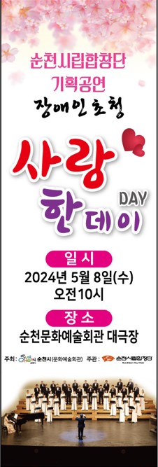 순천시문화예술회관은 오는 8일 문화예술회관 대극장에서 장애인 초청 공연「사랑한 데이」를 개최한다고 밝혔다.
