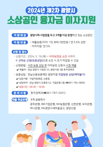 광양시-제2차 소상공인 융자금 이자 지원 신청 홍보물 광양시가 지난 2월 제1차 소상공인 융자금 이자 지원에...