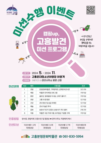 고흥군-캠핑 UP, 고흥 발견 미션수행 이벤트 홍보물 고흥군(군수 공영민) 분청문화박물관은 본격적인 캠핑 시...