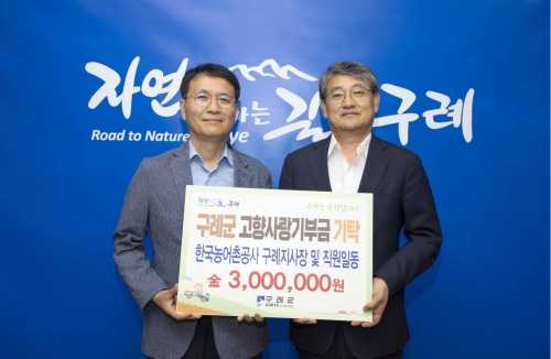 구례군 한국농어촌공사 구례지사(지사장 임성재)는 작년에 이어 올해도 구례군의 지속적 발전과 성장을 응원하는 ...