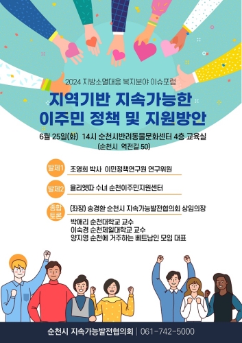 순천시-2024 지방소멸대응 복지분야 이슈 포럼 홍보물 순천시(시장 노관규)는 순천시 지속가능발전협의회(상임...