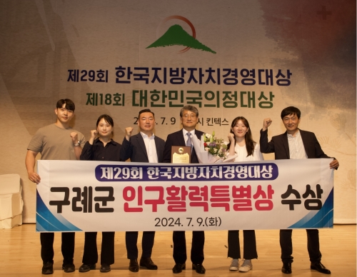 구례군 전남 구례군이 지난 9일 고양시 킨텍스에서 열린 제29회 한국지방자치경영대상에서 ‘인구활력특별상’을 ...
