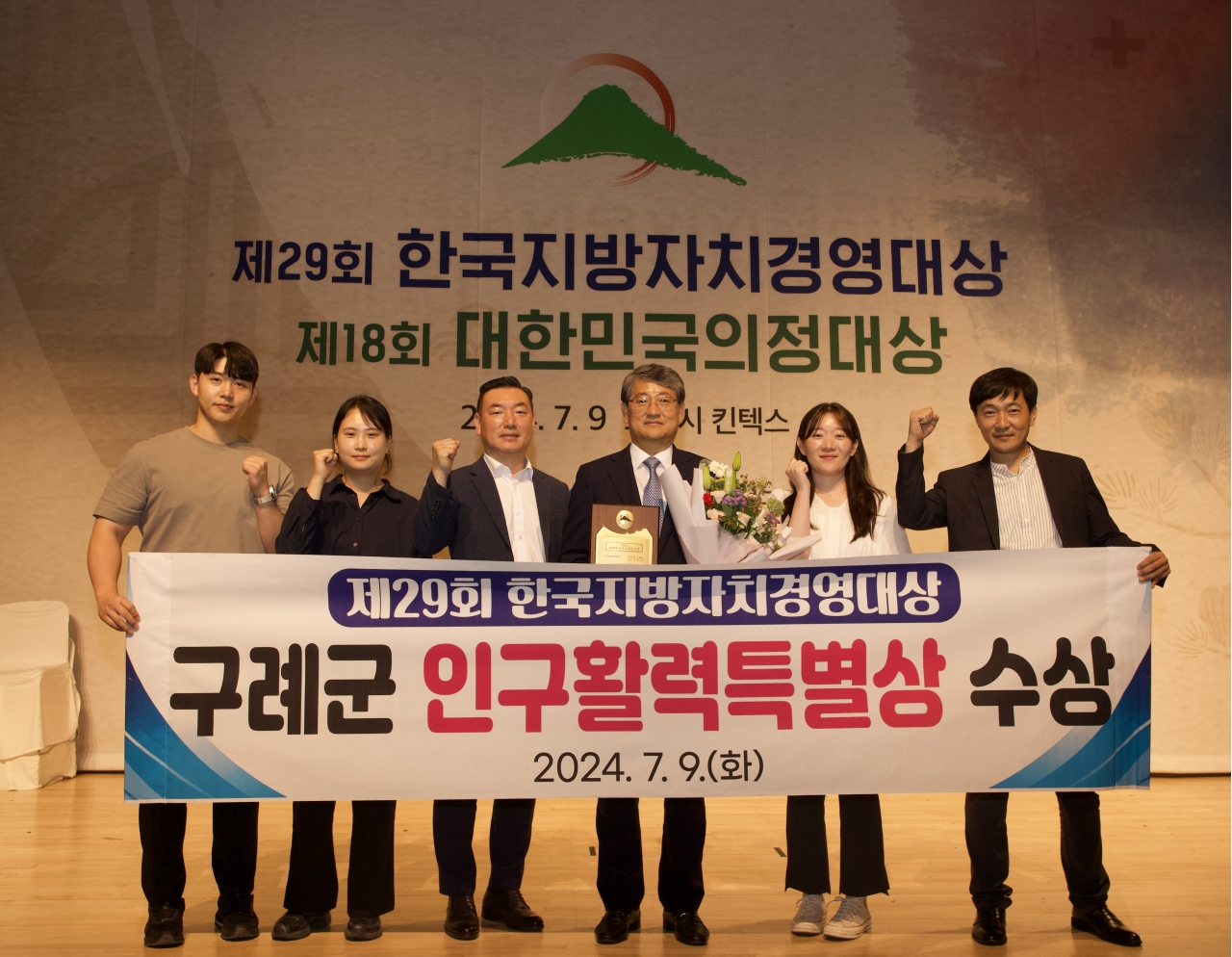 전남 구례군이 지난 9일 고양시 킨텍스에서 열린 제29회 한국지방자치경영대상에서 ‘인구활력특별상’을 수상했다.
