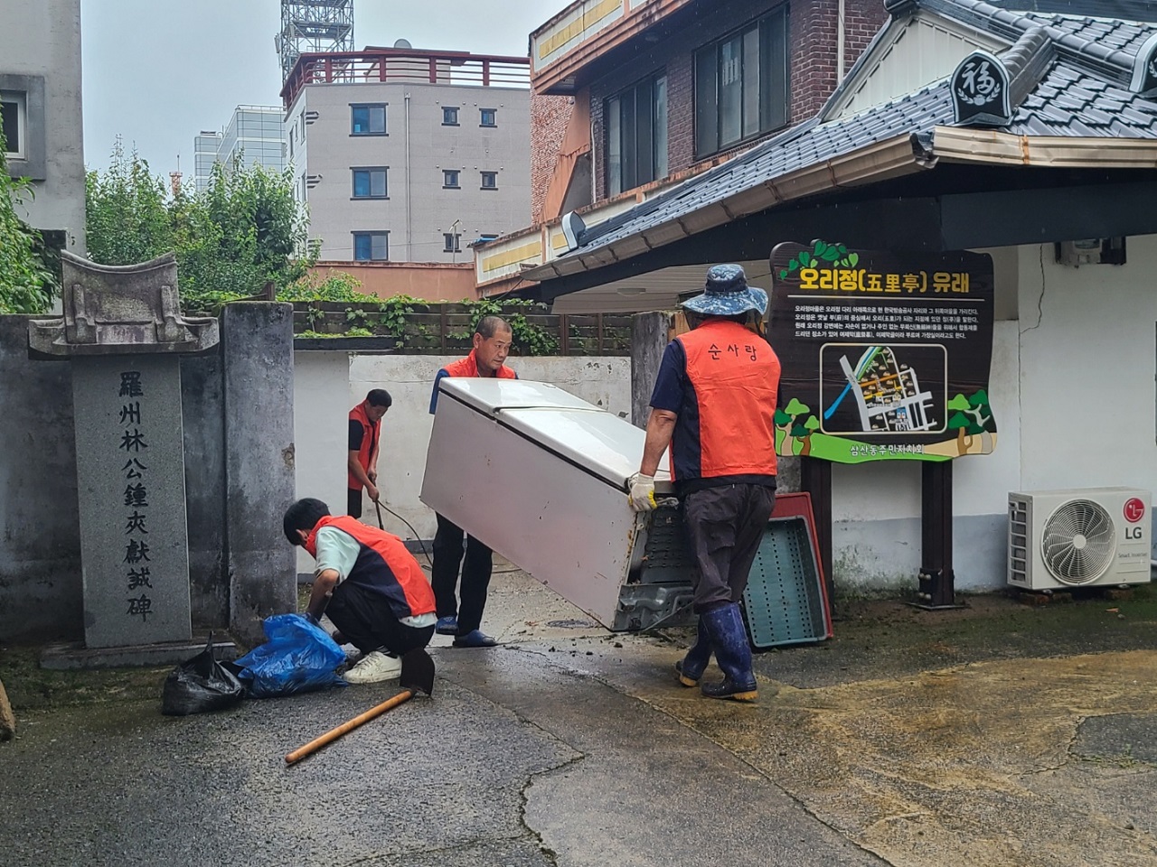 ‘오리정경로당’은 동지역에서 가장 오래된 경로당 중 하나로, 그동안 담장, 마당, 주출입로 등이 물이끼와 곰팡이 등으로 오염되고, 주변에는 폐가전제품 등이 쌓여 있어 어르신들의 통행에 지장을 주는 등 불편이 많았다. 하지만 삼산동에서는 ‘순사랑봉사단’(회장 김회열)과 연계하여 어르신들의 숙원사업을 해결할 수 있었다.