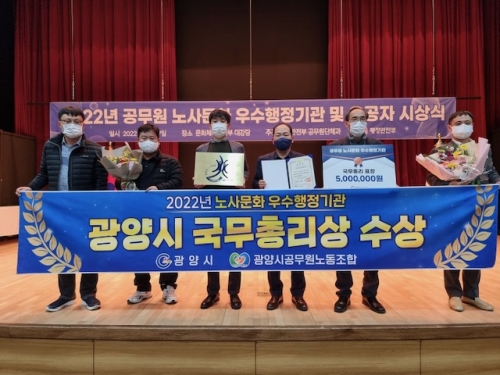 광양시-공무원 노사문화 우수기관 시상식‘국무총리상’ 수상 광양시가 지난 7일 정부세종청사에서 열린 시상식에서...