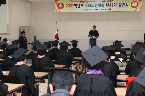 구례군- (사)대한노인회, 부설 노인대학 41기 졸업식 전남 구례군 노인대학은 지난 8일 (사)대한노인회구례...