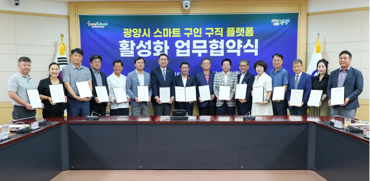 광양시는 9일 시청 상황실에서 지역고용 활성화 및 일자리 미스매치 해소를 위한 ‘스마트 구인구직 플랫폼 활성화’ 업무 협약식을 개최했다고 밝혔다.