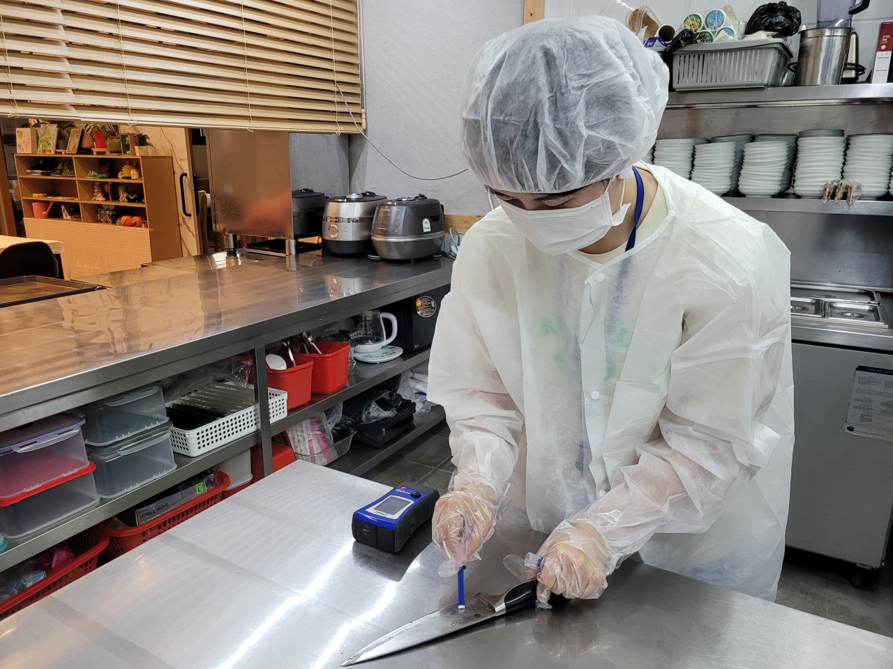 특히, 휴대용 세균측정기(ATP)를 이용해 조리 종사자의 손, 도마, 칼 등 조리 기구의 오염도를 계측하는 등 현장 맞춤형 식중독 예방 정보를 제공했다.