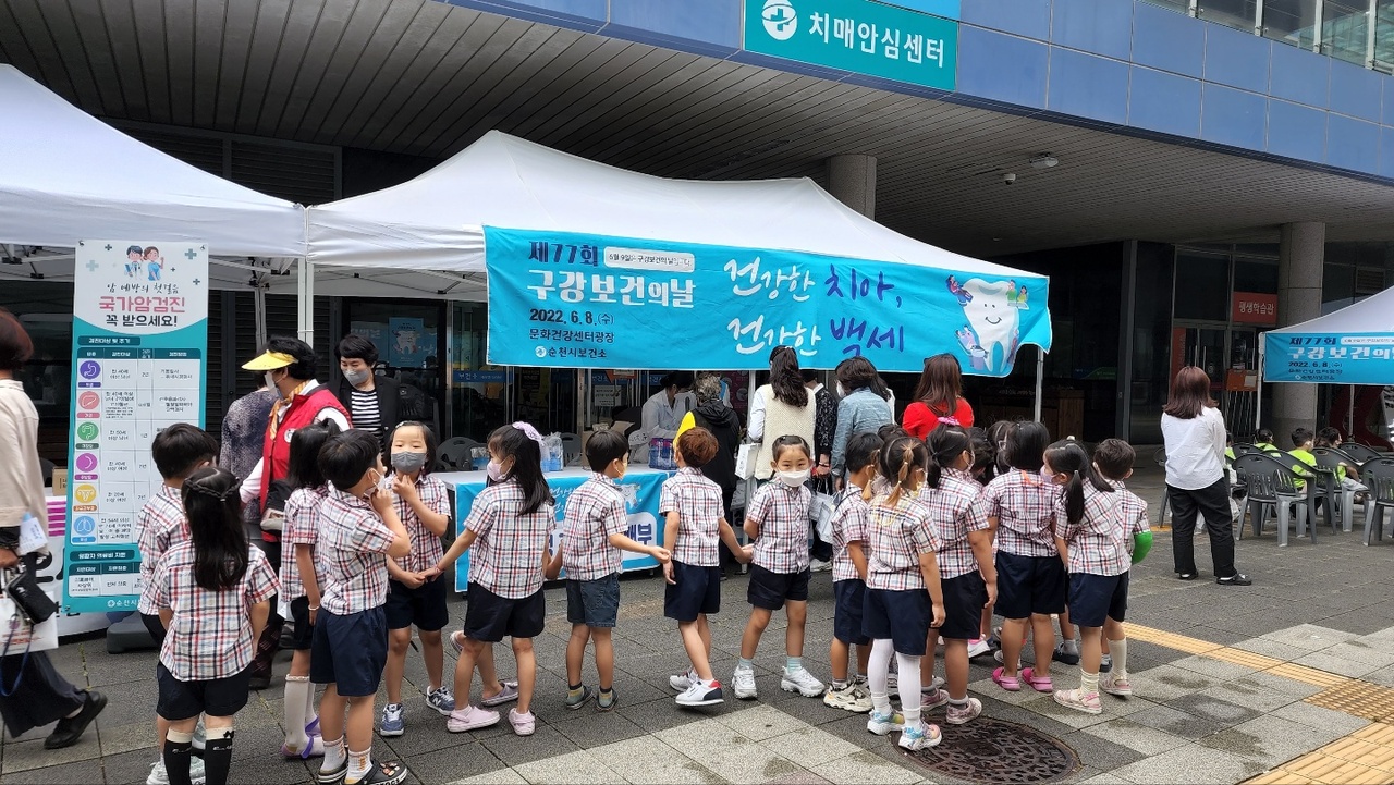 순천시는 6월 9일 제77회 구강보건의 날을 맞아 8일 문화건강센터 광장에서 구강건강에 대한 중요성을 인식하고 구강건강관리 용품을 체험할 수 있는 행사를 개최했다.