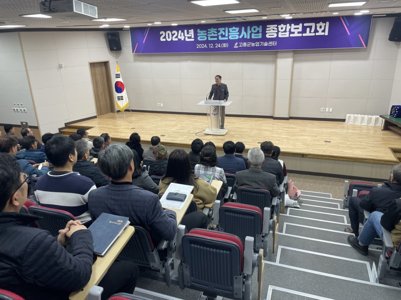 고흥군(군수 공영민)은 지난 24일 농업인 학습단체와 품목별 농업인 연구회, 시범사업 농가 등 100여 명이 참석한 가운데 ‘2024년도 농촌진흥사업 종합보고회’를 개최했다.