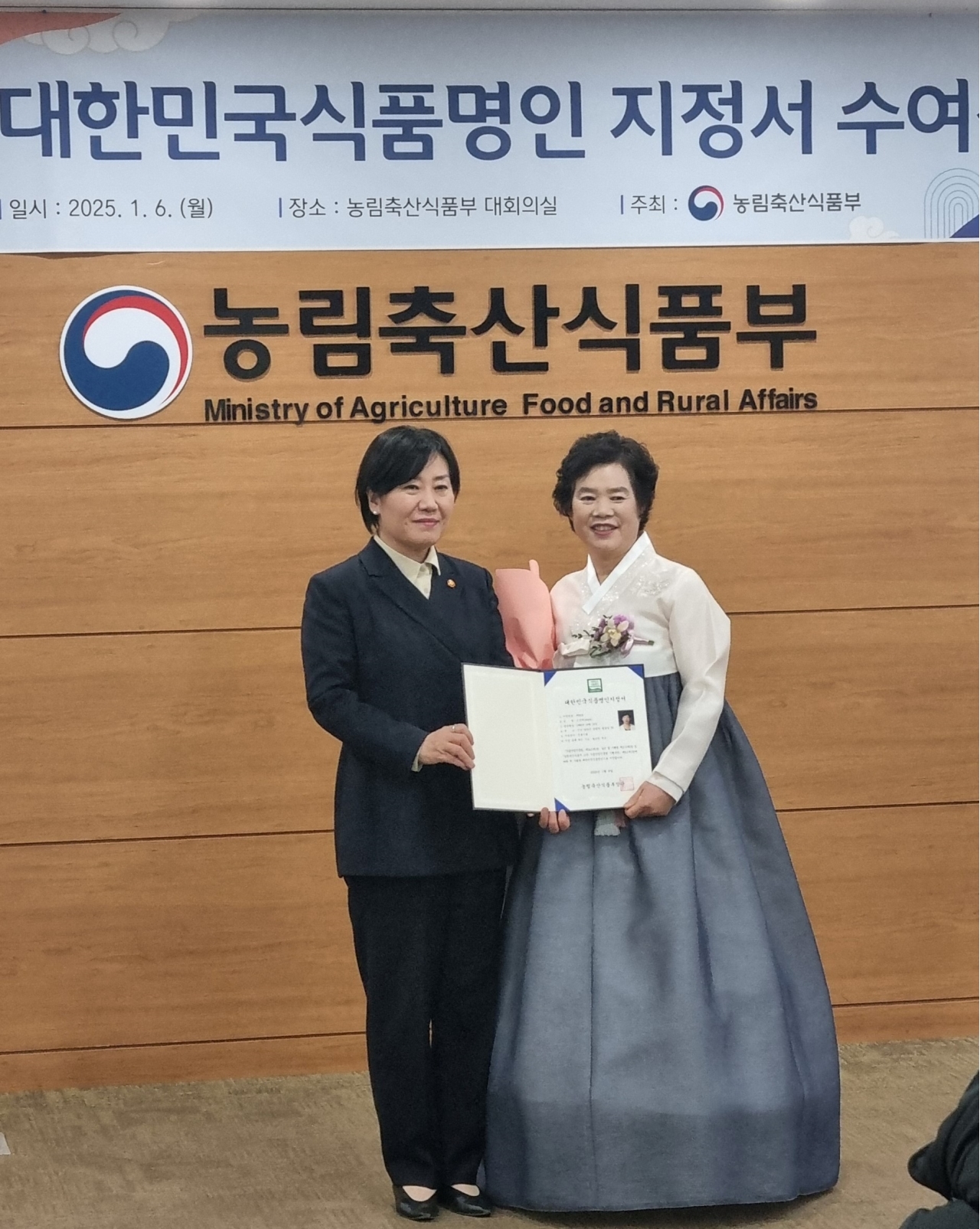 대한민국식품명인은 각 시·도에서 총 25명의 후보가 추천됐다. 서류와 현장심사를 통해 전통성과 계승·발전 필요성, 산업성 등 6개 항목의 적합성 검토를 거쳐 농식품부 식품산업진흥심의회 평가, 심의를 통해 최종 2명이 선정됐다.