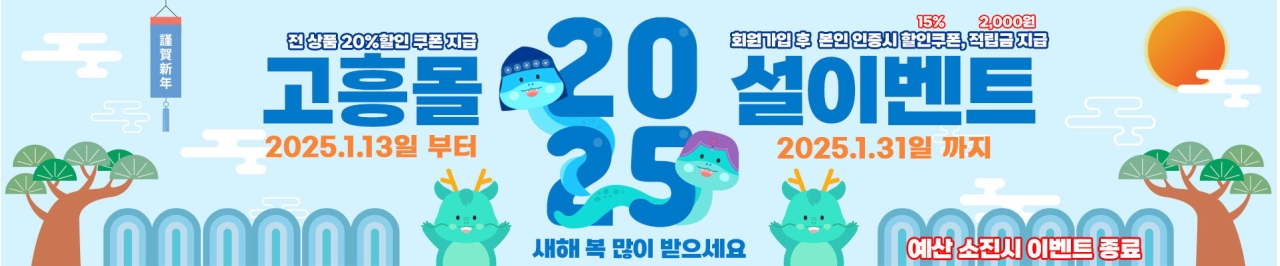 고흥군(군수 공영민)은 온라인 쇼핑몰 ‘고흥몰’이 고객들의 뜨거운 성원에 힘입어 설맞이 프로모션을 이번 달 31일까지 연장한다고 밝혔다.