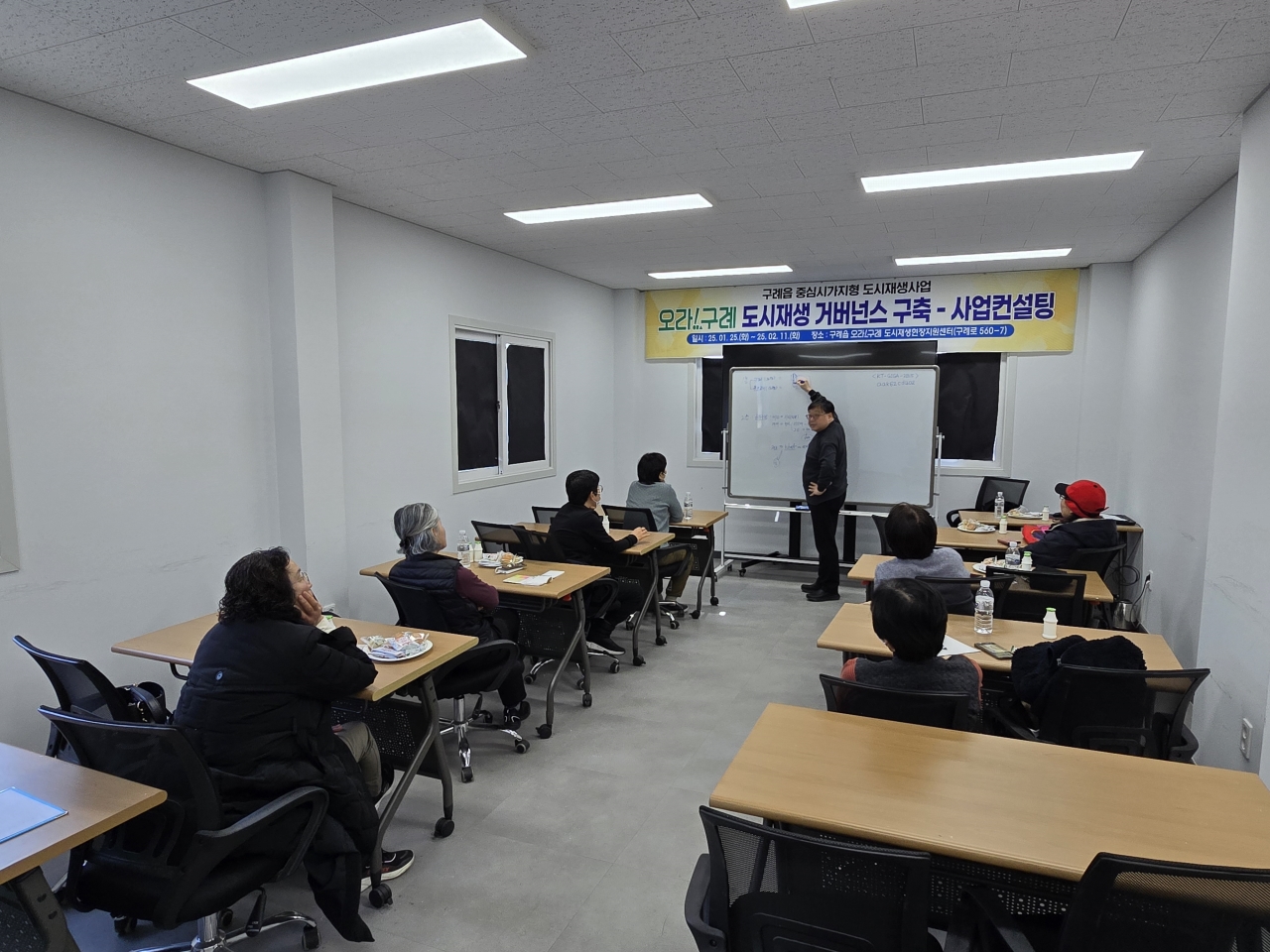 전남 구례군은 지난 21일 도시재생현장지원센터 2층 교육장에서 도란도란 협동조합(가칭) 7명이 참석한 가운데‘2025년 도시재생 거버넌스 구축(사업 컨설팅) 개강식’을 열었다고 밝혔다.