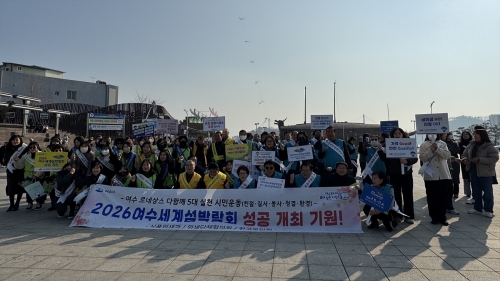 여수시 여수시(시장 정기명)가 지난 21일 이순신광장 일원에서 2026여수세계섬박람회 성공개최를 기원하는 ‘...