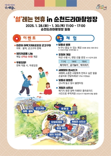 순천시 순천드라마촬영장은 설 명절을 맞아 순천을 방문하는 귀성객과 관람객들을 위해 다채로운 놀이 프로그램을 ...