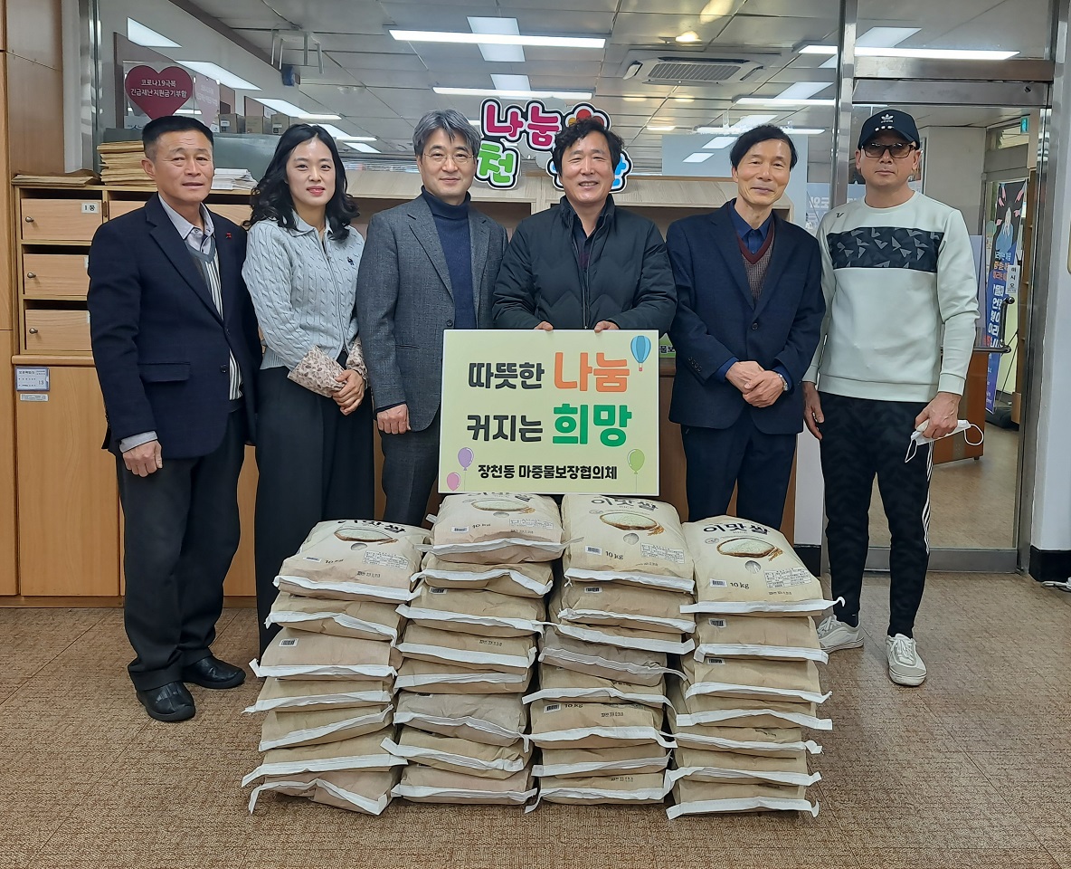 기탁된 백미는 장천동마중물보장협의체 회원들이 직접 복지사각지대 대상자, 독거노인, 저소득 청장년 1인가구 등 도움이 필요한 소외계층 30세대에 전달할 예정이다.