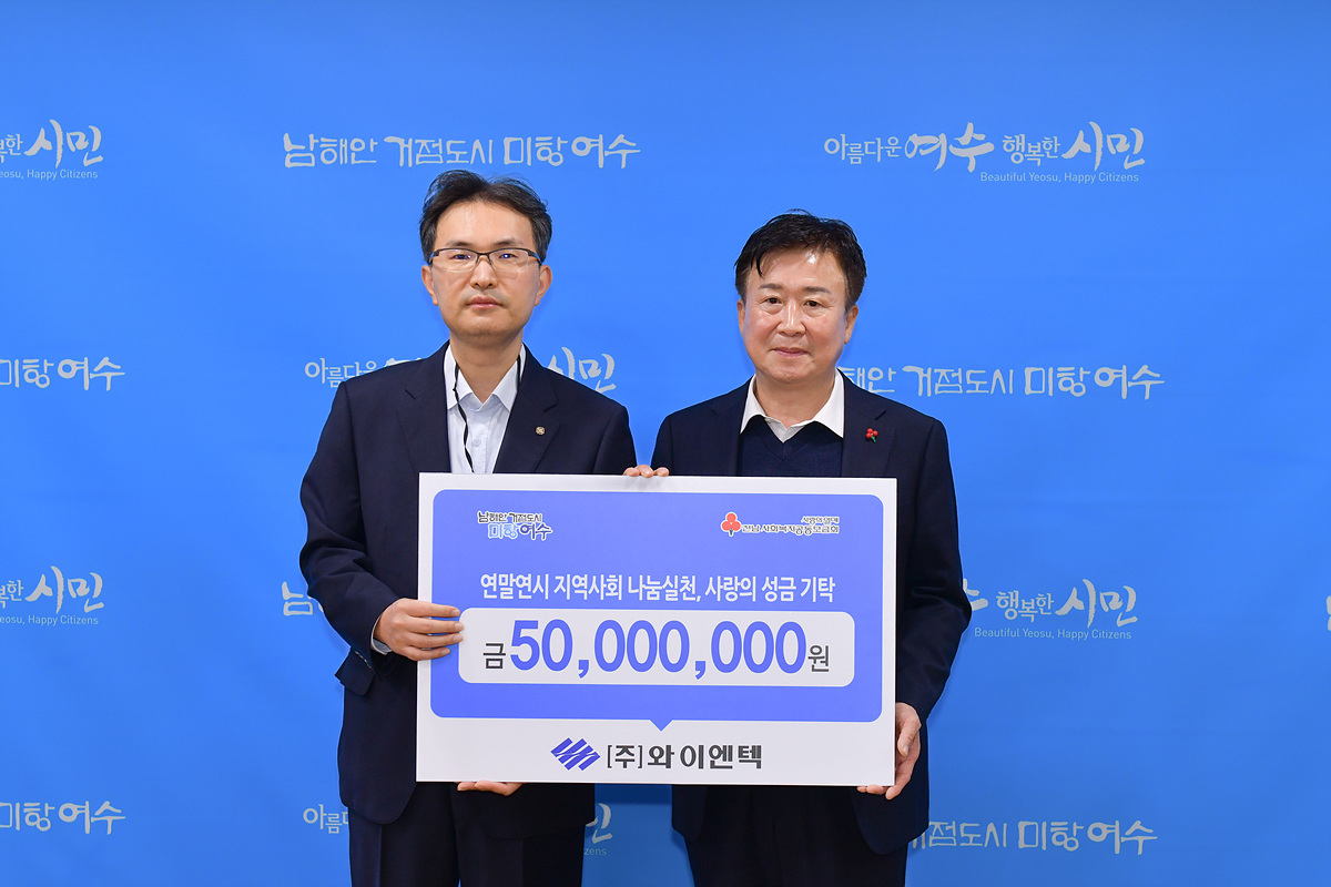 정기명 여수시장은 “연말이 다가오며 지역 각계각층에서 이어지는 따뜻한 정성들이 행복도시 여수를 만드는데 큰 힘이 되고 있다”며 “매년 지속적으로 후원을 아끼지 않으신 ㈜와이엔텍에 감사드린다. 따뜻한 관심과 사랑으로 늘 여수발전에 함께하는 기업이 되어주시길 바란다”고 전했다.