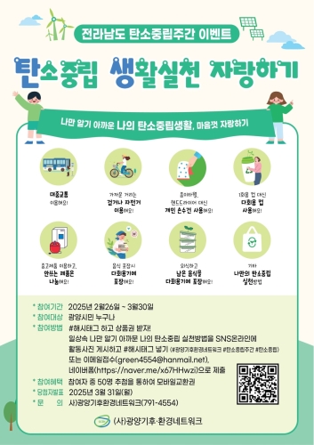 광양시 광양시는 전라남도 탄소중립주간을 맞이해 (사)전남광양기후·환경네트워크와 함께 탄소중립 생활실천 이벤트...