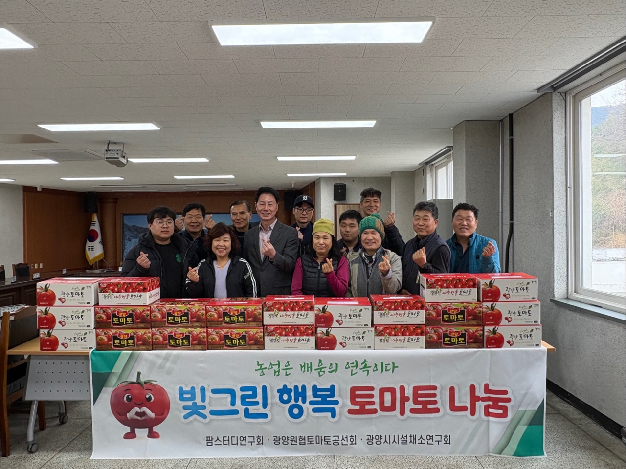 광양시는 3월 11일 팜스터디연구회(회장 문영일), 광양원협토마토공선회(회장 양승인), 시설채소연구회(회장 문영운)가 이웃사랑 실천을 위해 진상면사무소에 토마토 5kg 22박스를 전달했다고 밝혔다.