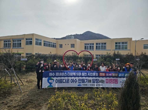 여수시 여수시 미평동(동장 유수성)이 봄을 맞아 지난 12일 미평공원 행복정원 가꾸기에 나섰다. 이날 미평동...