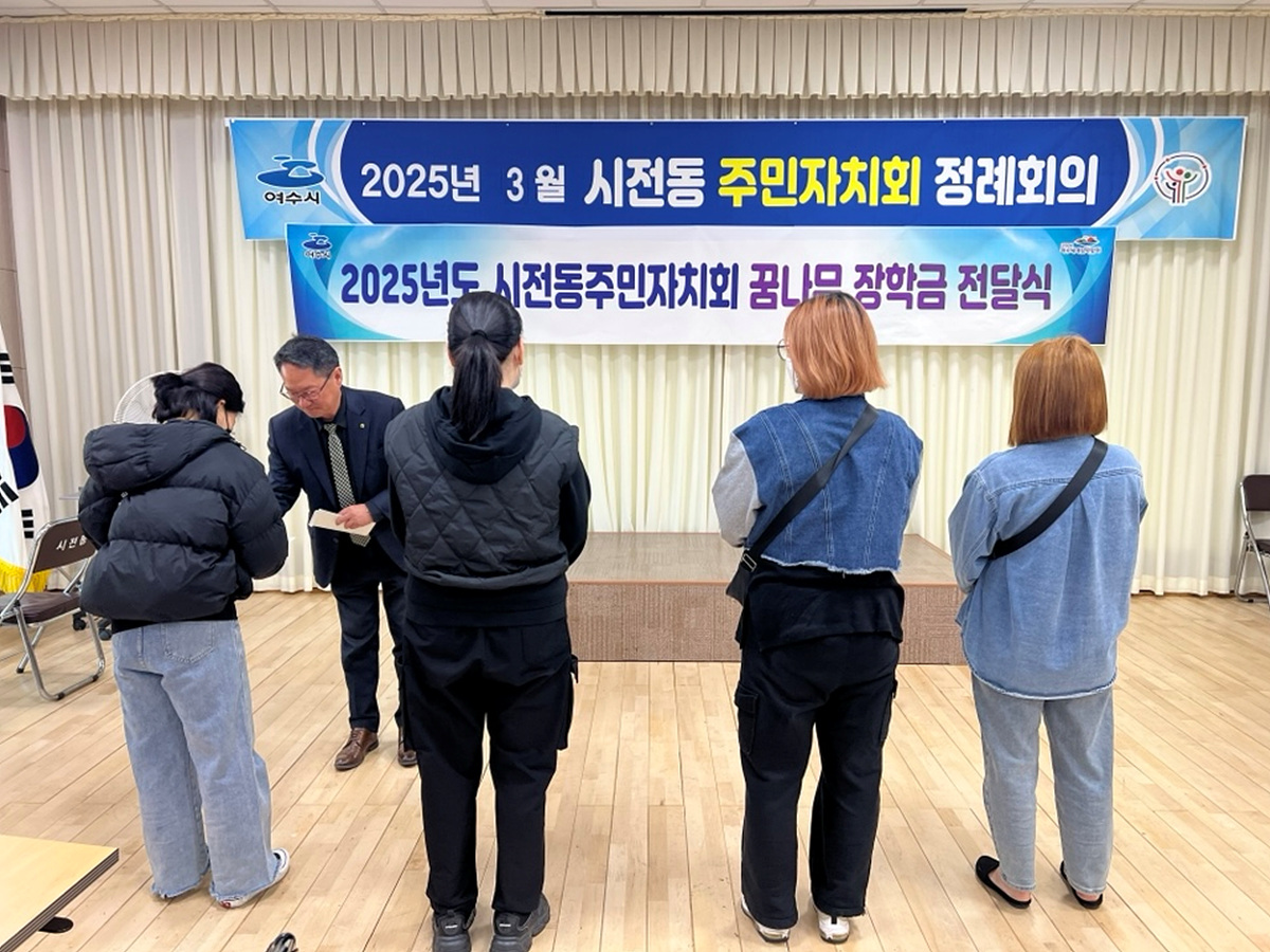 시전동 주민자치회(회장 이영륜)는 지난 21일 월례회의에서 저소득 가정 학생을 위한 꿈나무 장학금 전달식을 가졌다.