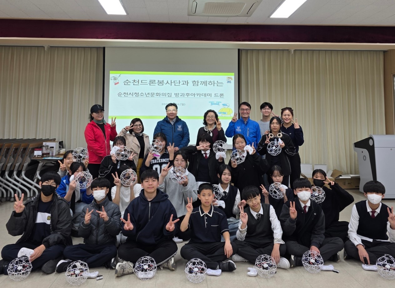 순천시(시장 노관규)는 순천드론동호회 봉사단(회장 최준철)과 연계한 2025 청소년문화의집 방과후아카데미 드론 프로그램을 운영하고 있다고 밝혔다.