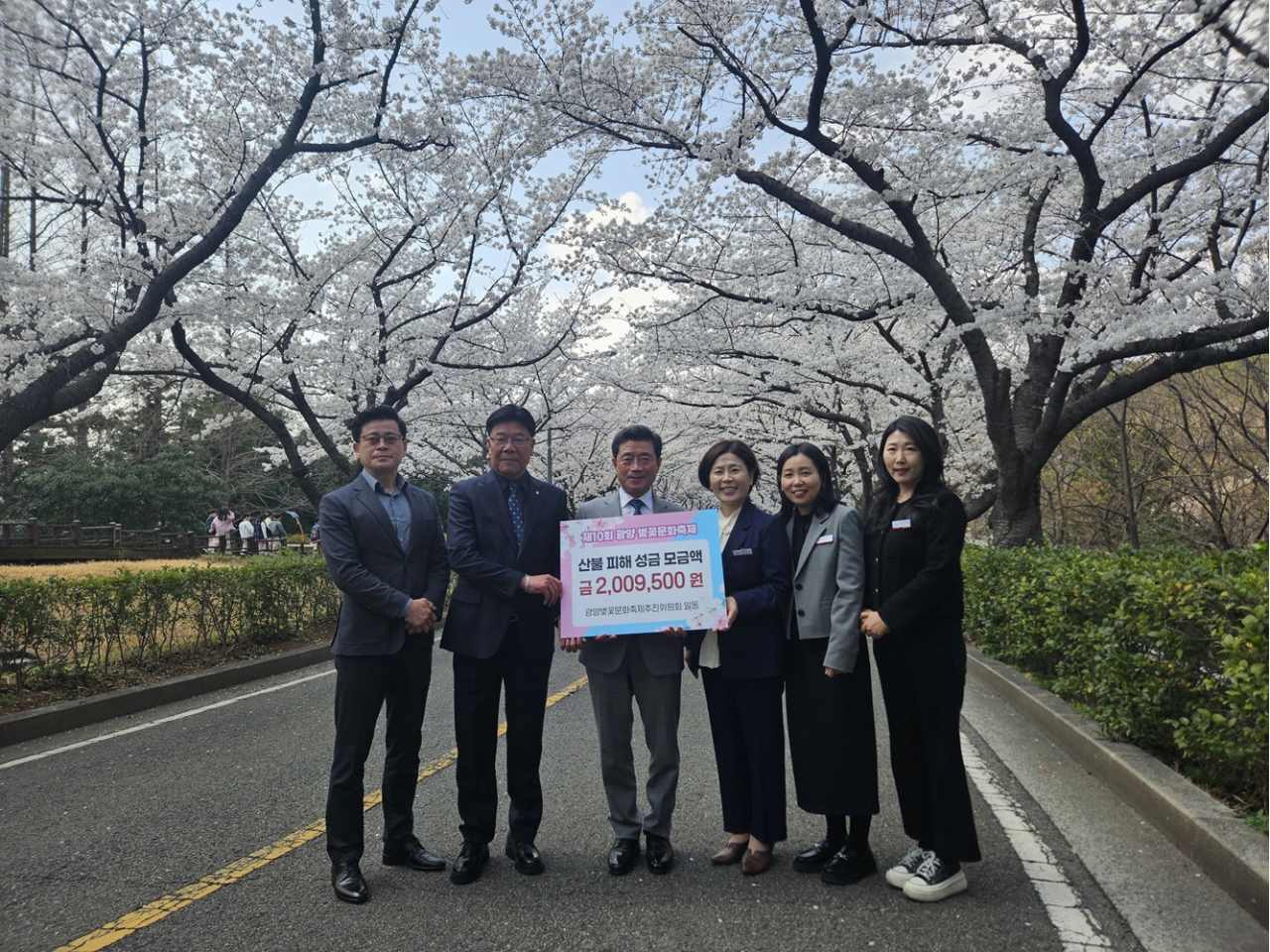 광양벚꽃문화축제추진위원회(위원장 김종현)는 제10회 광양벚꽃문화축제 기간 동안 산불 피해 복구를 위한 성금 모금 활동을 진행했으며, 모금된 총 2,009,500원을 산불 피해 지역에 기부할 예정이라고 3일 밝혔다.