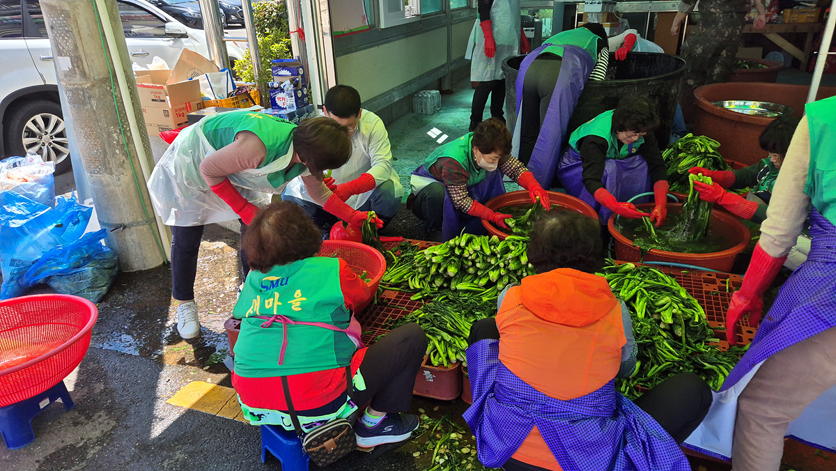 여수시 국동 새마을부녀회(회장 명행란)와 새마을지도자협의회(회장 김남수)는 지난 7일 주민센터에서 사랑의 갓김치 나눔 행사를 가졌다.