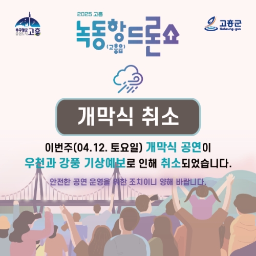 고흥군 고흥군(군수 공영민)은 오는 4월 12일(토) 저녁 8시 녹동항 바다정원에서 개최 예정이었던 녹동항 ...