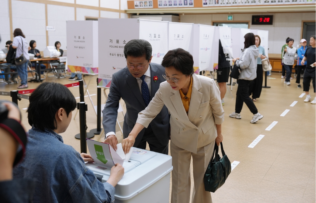 정인화 광양시장이 제21대 대통령선거 사전투표 첫날인 5월 29일 오전 9시경, 부인 국금옥 여사와 함께 광양시청 시민홀(1층)에 설치된 중마동 사전투표소를 방문해 유권자로서 소중한 한 표를 행사했다.