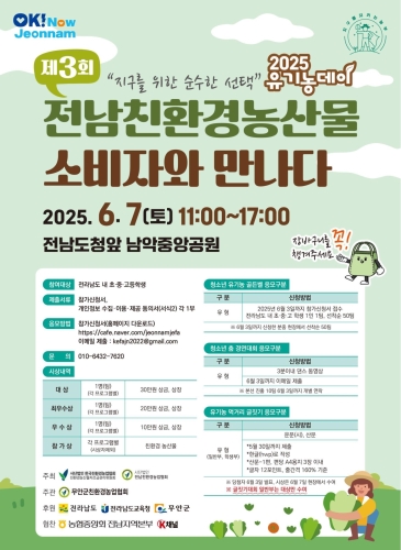 전라남도 전라남도는 오는 7일 오전 11시부터 오후 5시까지 전남도청 앞 남악 중앙공원에서 2025 유기농데...