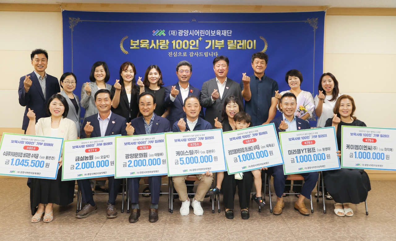 (재)광양시어린이보육재단(이사장 이광용)은 지난 7일 광양시청 만남실에서 ‘보육사랑 100인+ 기부 릴레이’ 후원금 기탁식을 개최했다.