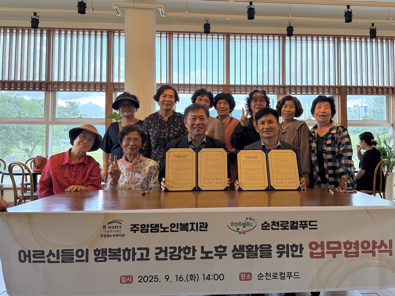 순천시(시장 노관규) 출자 기관인 농업회사법인 순천로컬푸드㈜가 지난 16일 K-water 나눔복지재단 주암댐노인복지관(관장 문응연)과 업무 협약을 체결했다.