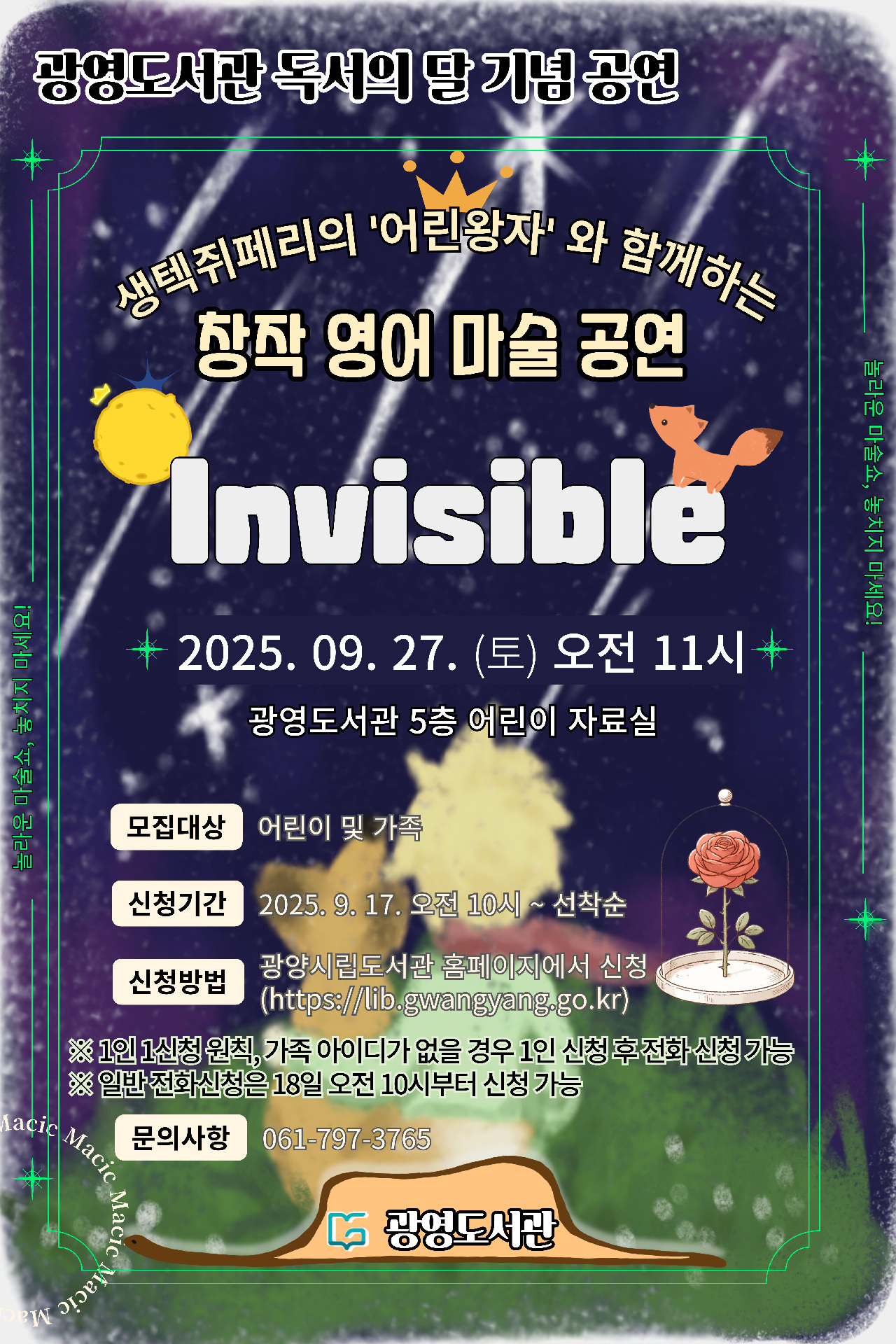 이번 공연은 생텍쥐페리의 소설 『어린왕자』를 소재로 한 창의적인 마술 무대로, 오는 9월 27일 오전 11시 광영도서관 5층 어린이실에서 열린다.