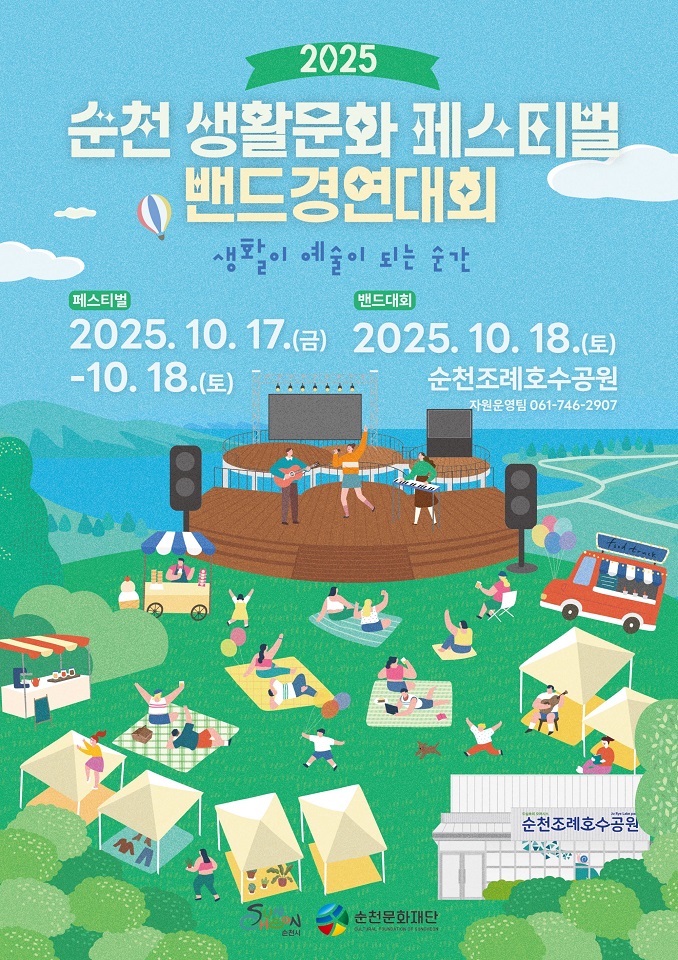 (재)순천문화재단(이사장 노관규)은 오는 17일부터 18일까지 조례호수공원 일원에서 ‘제6회 순천생활문화페스티벌’을, 18일에는 ‘제5회 순천생활문화 밴드 경연대회’를 개최한다.