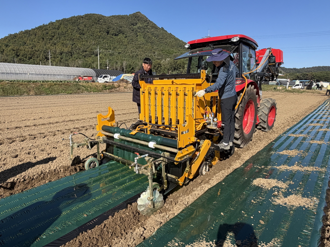 이날 연시회에서는 두둑 형성, 비닐멀칭, 파종, 농약 살포가 한 번에 가능한 마늘 복합파종기가 시연됐다. 해당 기계는 작업공정을 일체화해 인력 투입을 대폭 줄이고, 파종작업의 효율을 높여 노동력 절감에 크게 기여할 것으로 기대되며, 이번 연시회가 마늘 기계화 추진과 협업모델 확산의 출발점이 될 것으로 보인다.