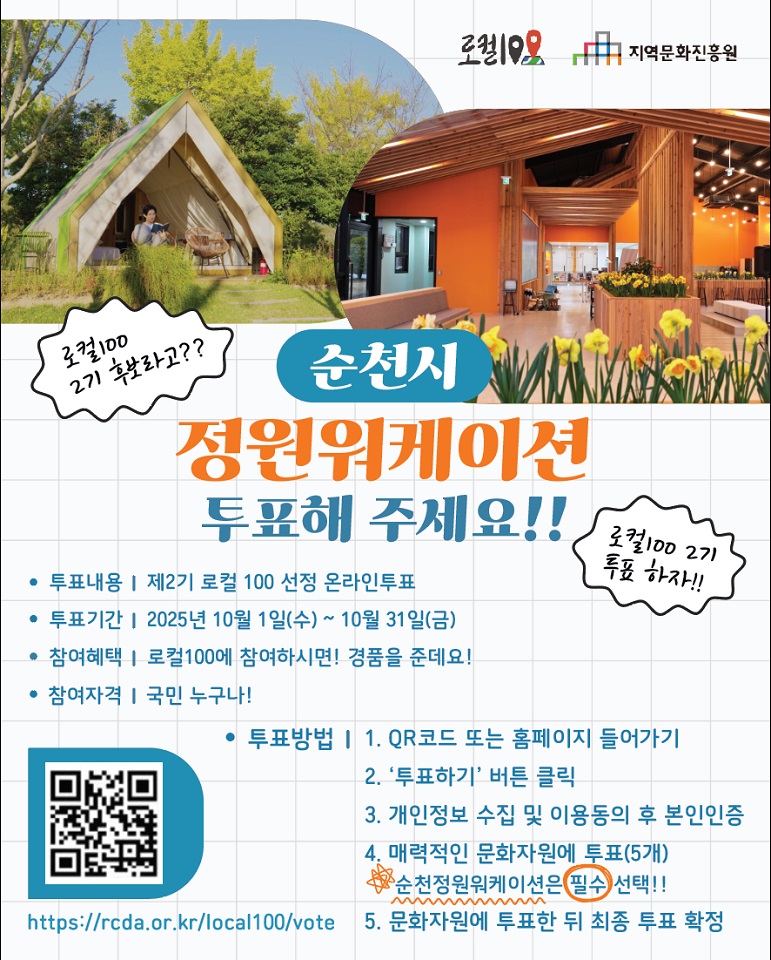 ‘로컬 100’은 문화체육관광부에서 주관해 우리 지역과 동네를 대표하는 매력적인 문화자원 100개를 선정하는 사업으로 지난 2023년 1기 선정에 이어 올해 2번째로 진행하는 사업이다. 현재 2기 선정을 위해 이달 말까지 온라인 투표가 진행되고 있으며, 최종선정은 전문가 심사를 합산하여 12월 중 최종 결과가 발표된다.