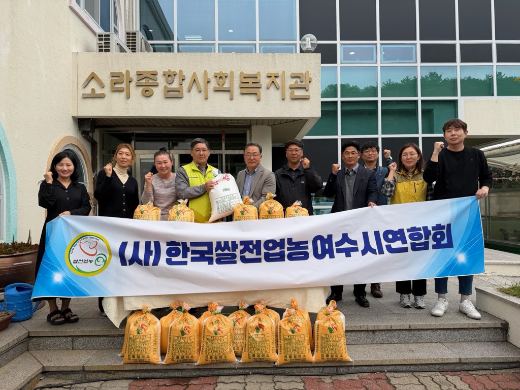 (사)한국쌀전업농여수시연합회(회장 서유성)는 지난 10월 30일 지역사회 내 어려운 이웃을 돕기 위해 소라면 관내 복지기관에 찹쌀 600kg(10kg 60포)를 후원했다.