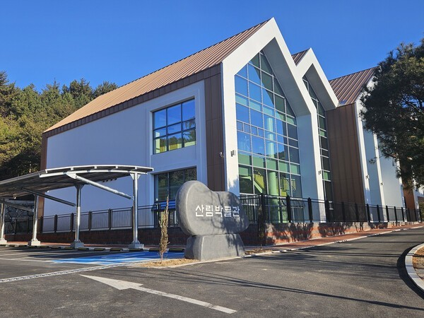 숲길을 따라 걷다 보면 단풍에 물든 나무 사이로 백운산 산림박물관이 모습을 드러내며, 방문객을 자연 속 배움의 공간으로 안내한다.