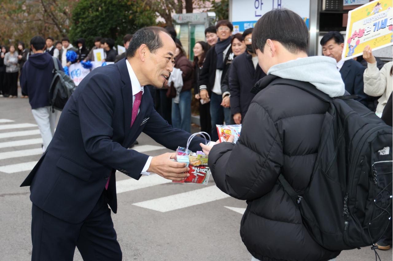고흥군(군수 공영민)은 2026학년도 대학수학능력시험일인 13일, 고흥고등학교 시험장을 찾아 수험생들의 선전을 기원하는 응원 행사를 실시했다고 밝혔다.