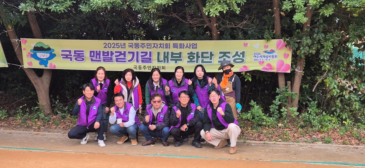 여수시 국동 주민자치회(위원장 이오남)는 지역 대표 힐링 공간인 국동 맨발길 내부에 화단을 조성하는 특화사업을 추진했다고 밝혔다.